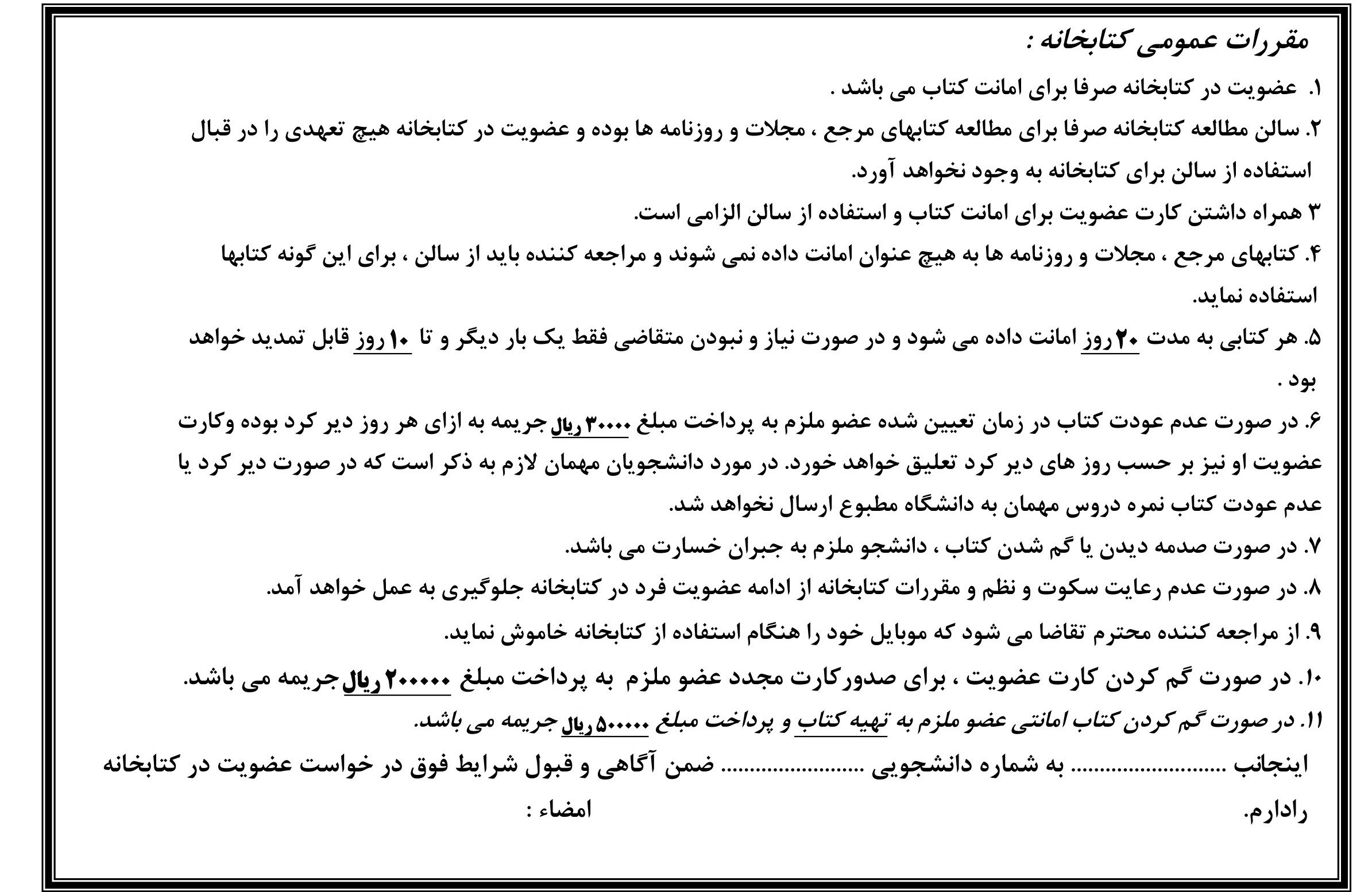 - همراه داشتن کارت دانشجوی یا عضویت در سالن مطالعه الزامی است.