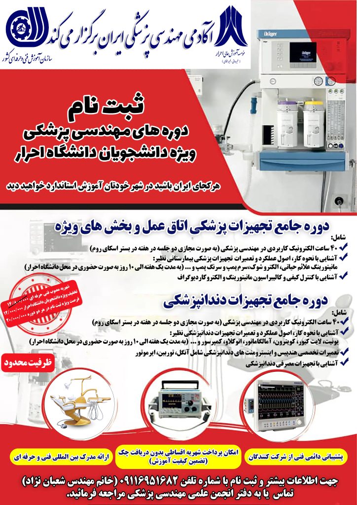 دوره های مهندسی پزشکی ویژه دانشجویان موسسه احرار رشت دیدگاه خود را بنویسید / اخبار, اطلاعیه ها, اطلاعیه های فرهنگی و دانشجویی
